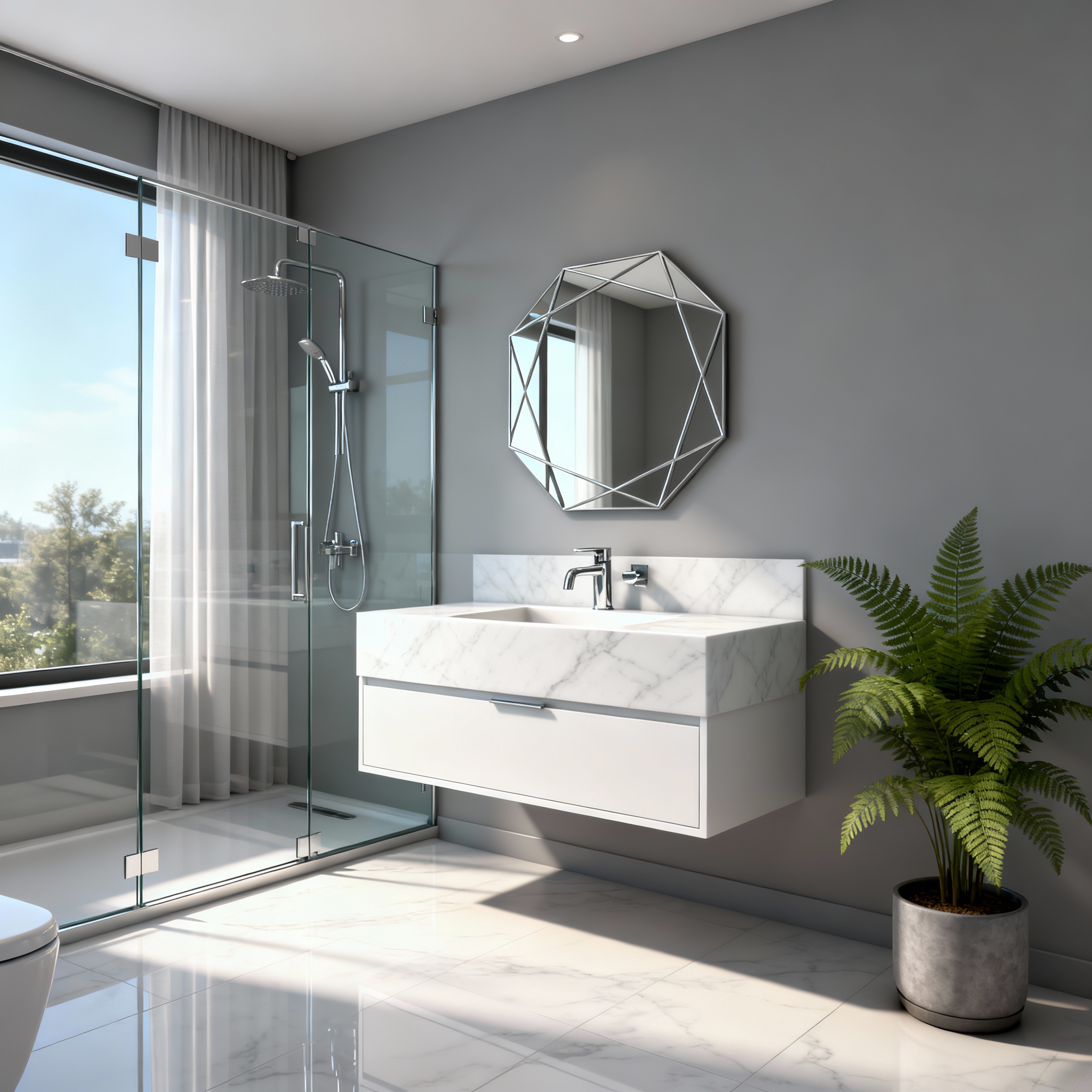 Transform your bathroom into a sanctuary with AI Bathroom Design by Renovate AI. Quickly visualize concepts that inspire and elevate your space.