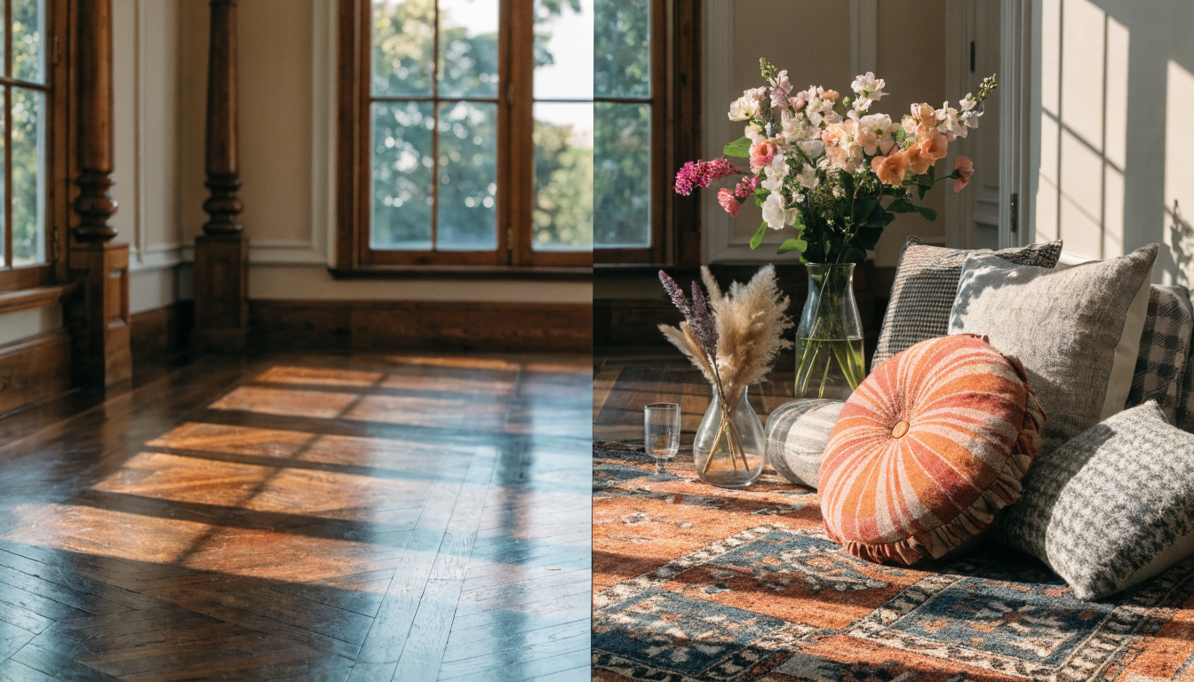 Preview rugs in your actual room before you buy. Upload a photo, drop in any rug style, and compare patterns, sizes, and colors against your real furniture in seconds.